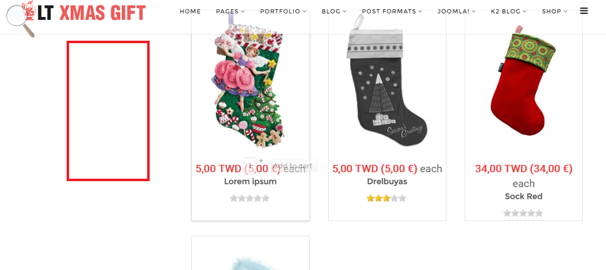 but if I enter the gray sock (the second one) page, I can not see the category menu, but these two product's seeing is 100% identical, (sock1.png, sock2.png)