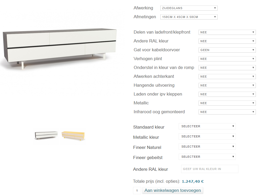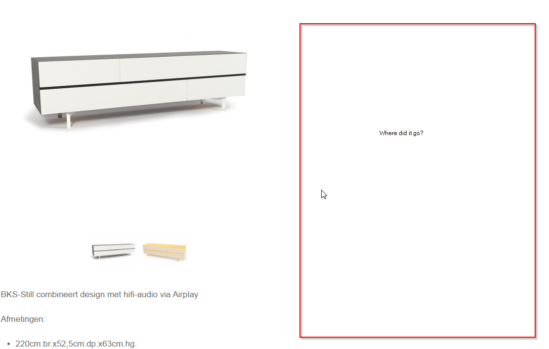 I've created products with variants, options and custom fields. At first when the default variant is displayed on the screen, all options and custom fields are visible. After selecting another variant all fields (variants, options, custom fields, add to cart button) disappeared. (see screenshots)