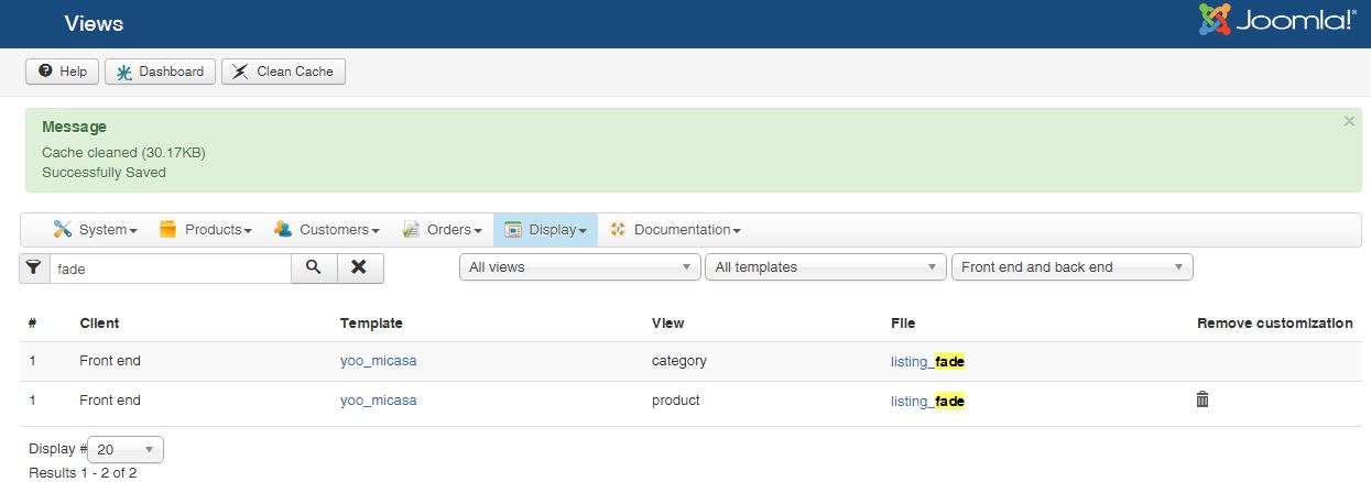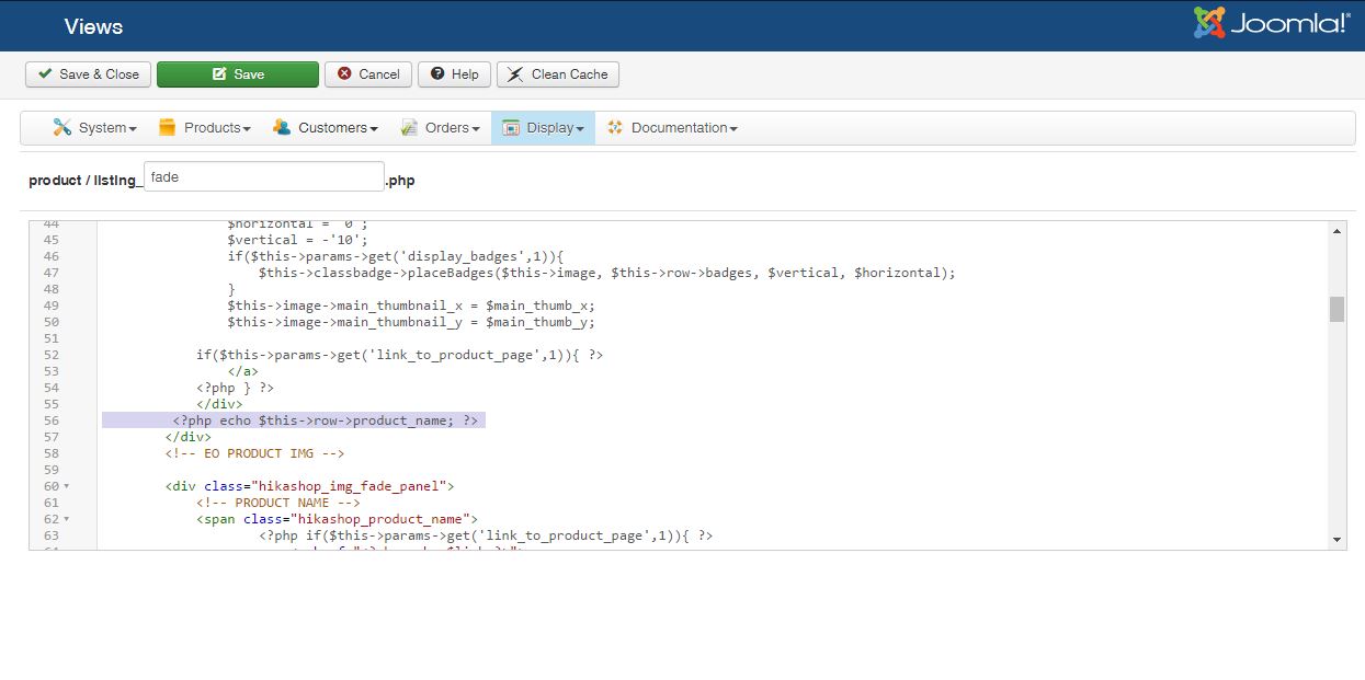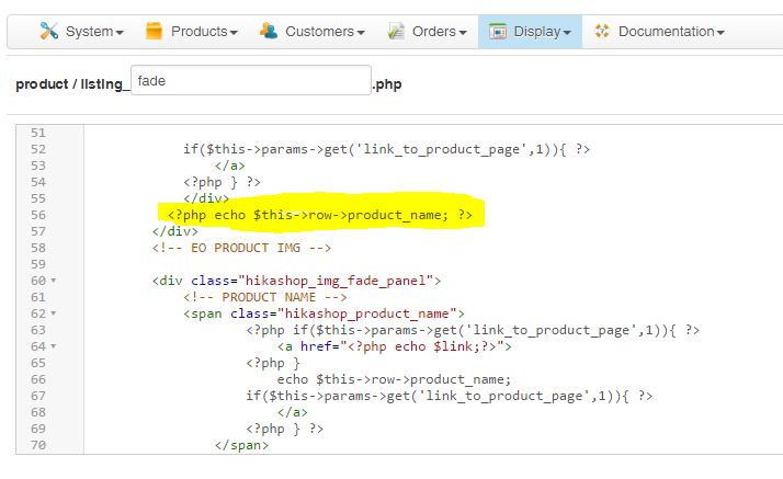 in the file "listing_fade" of the view "product" via the menu Display>Views.