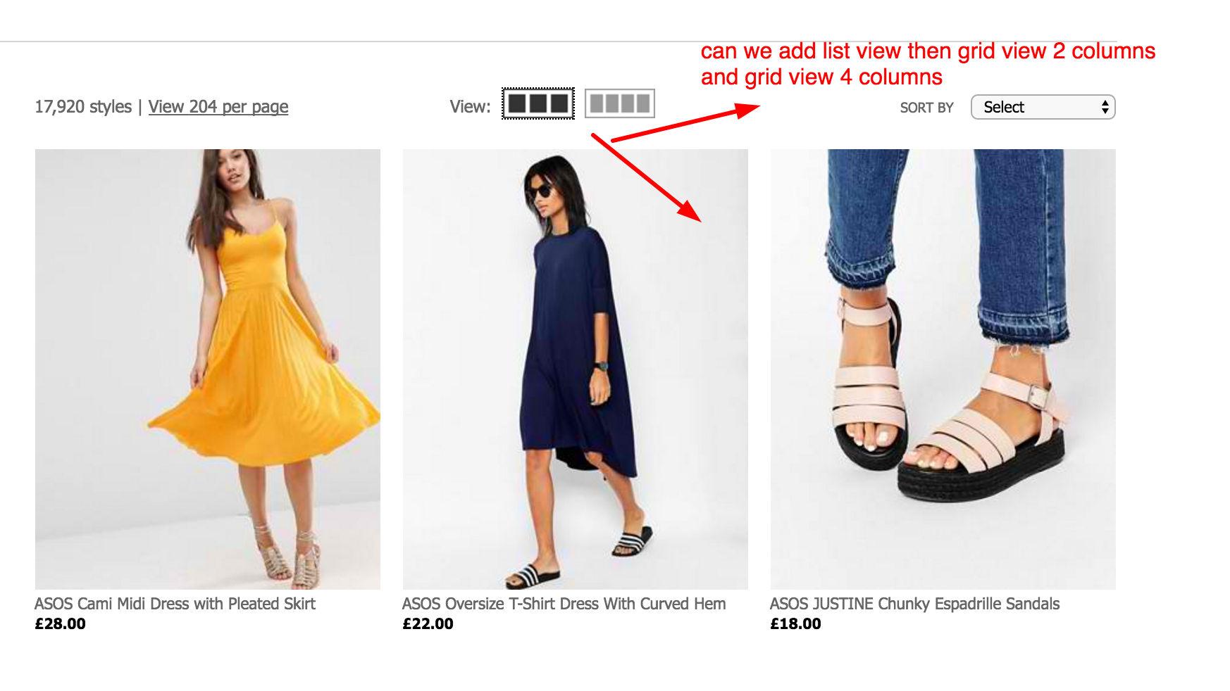 let me explain. As seen on the thread i want to implement list view to grid view 2 columns and grid view 3 columns that can be selected by the user on the front end. I am currently using product list div single column title and description layout. How can i achieve this?