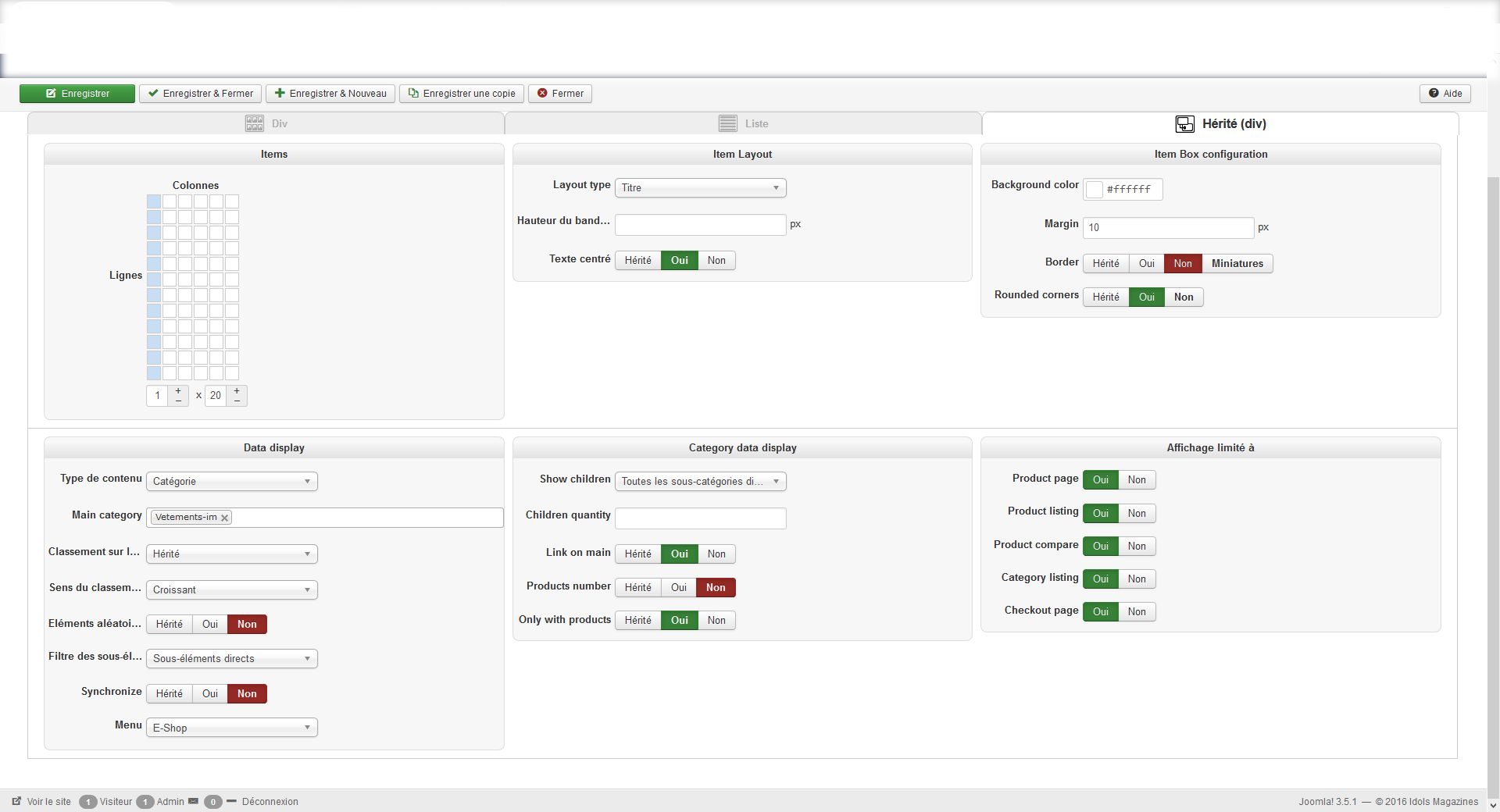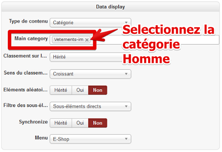 J'ai la catégorie principale : catalogue vêtement