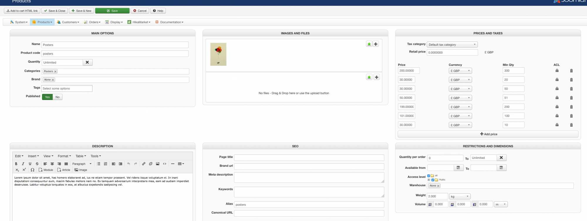 To clarify - attached is an example of a product with the available quantitie and the price matrix.