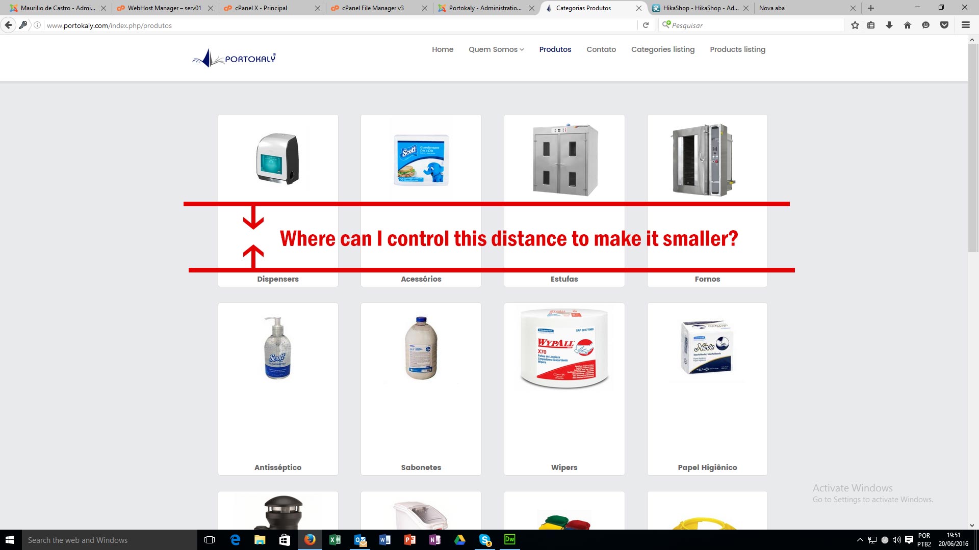 Where can I control the distance between image and category name and between image and product name?