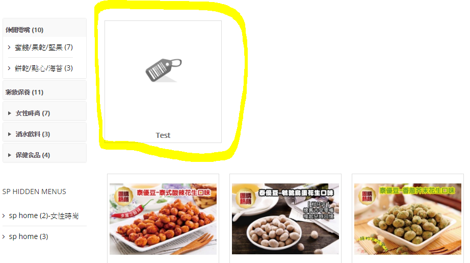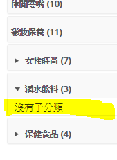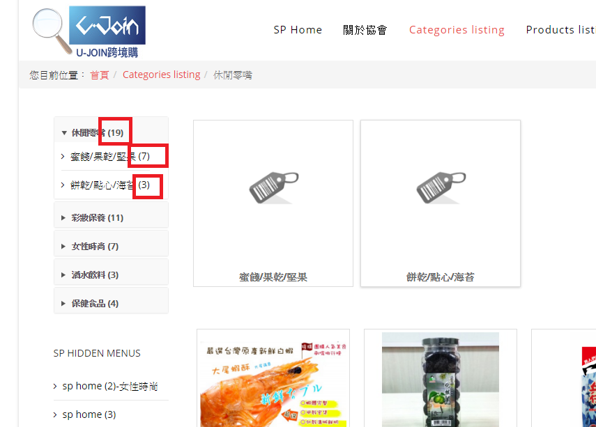 You should remove the products from the main category 休閒零嘴 if you don't want them to be counted in.