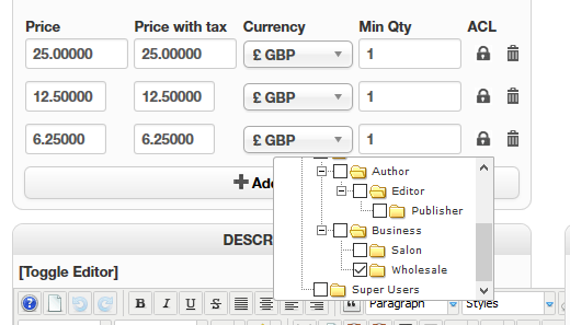 I have 3 prices for a product. Retail, Salon & Wholesale. ACL has been set up and all works correctly until I set minimum quantity for the wholesale price. When I do this, the retail price is also shown. Is there a way to disable this and only show the wholesale price if minimum quantities are added? The full retail price does not need to be displayed...