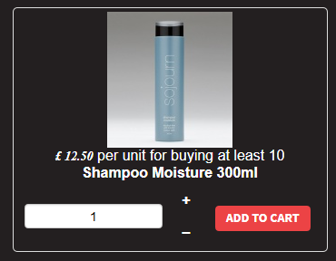 Now when I change any of the Salon or Wholesale to min quantity I get the result shown in the screenshot product-view-min. The full price is always shown as well as the price for the group.