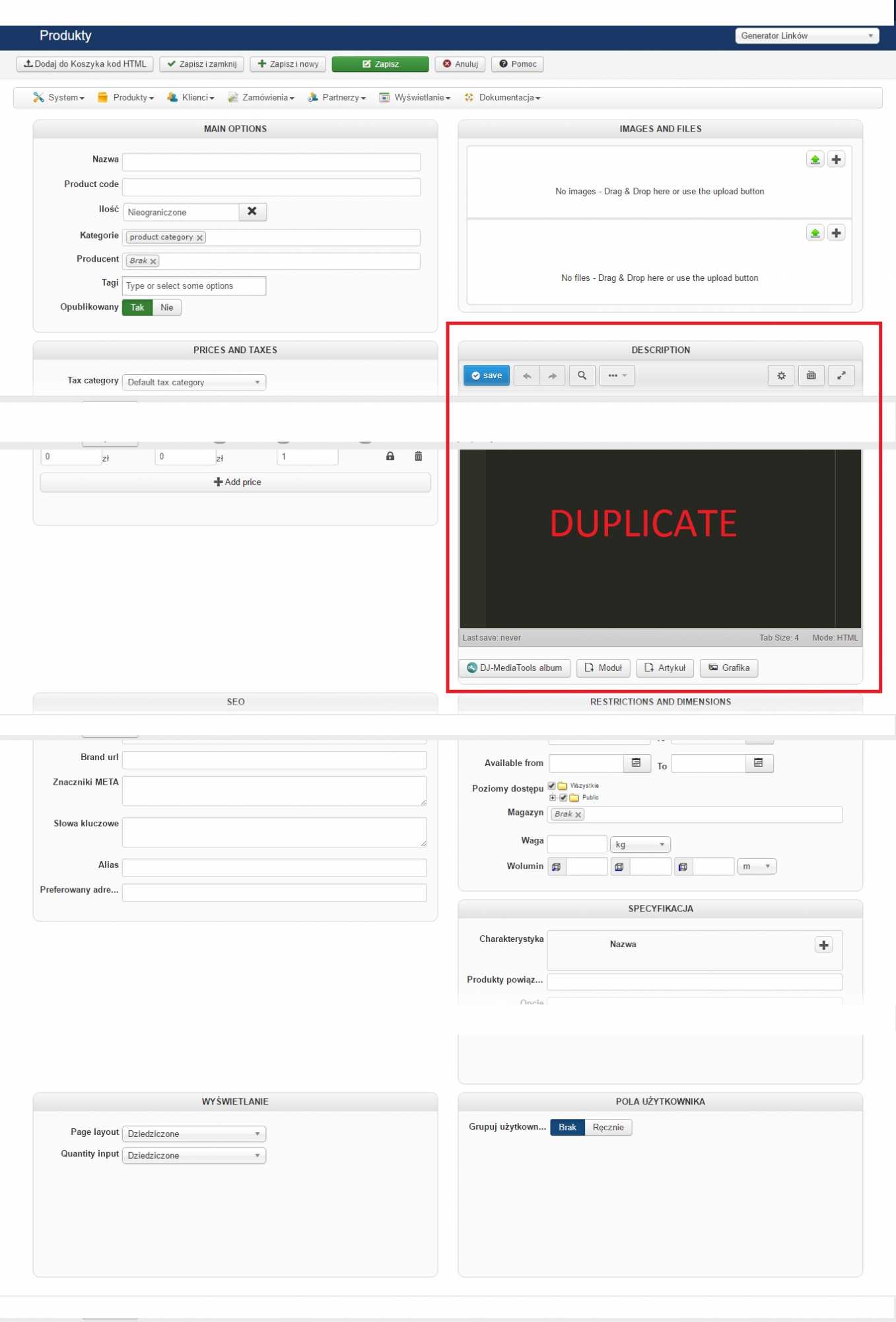 Add new form to backend product view