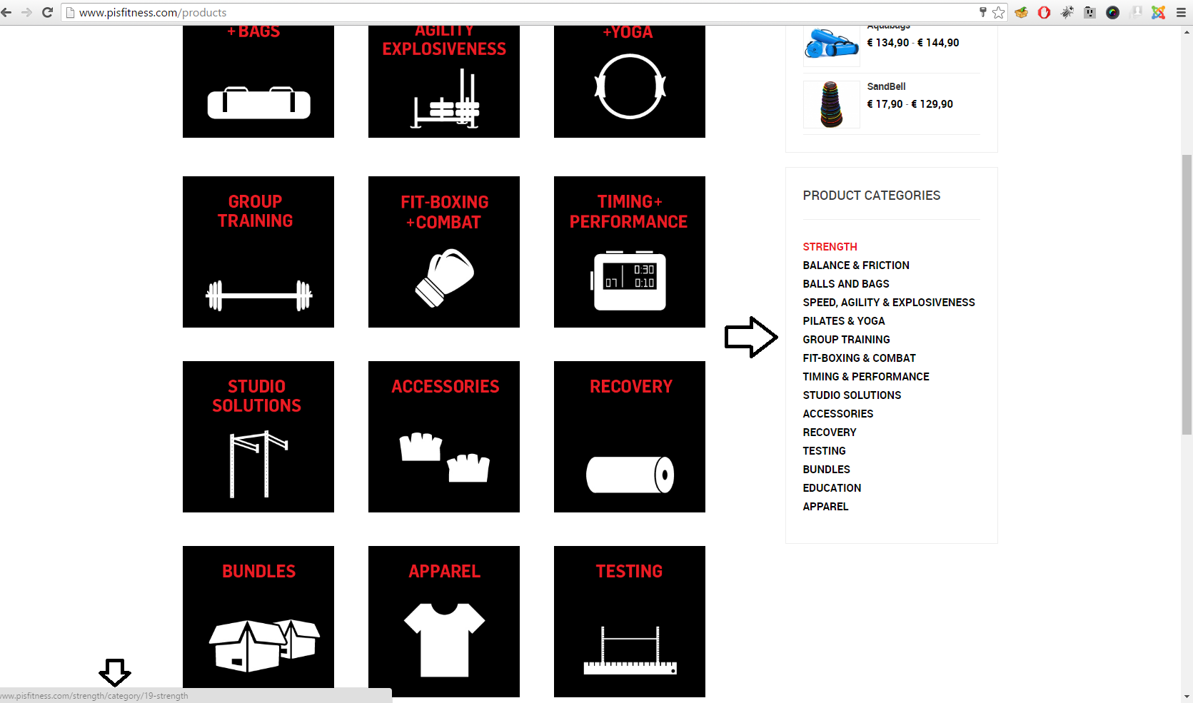 I would recommend to create menu items for the categories, like you did for strength, and it should have links like you want.