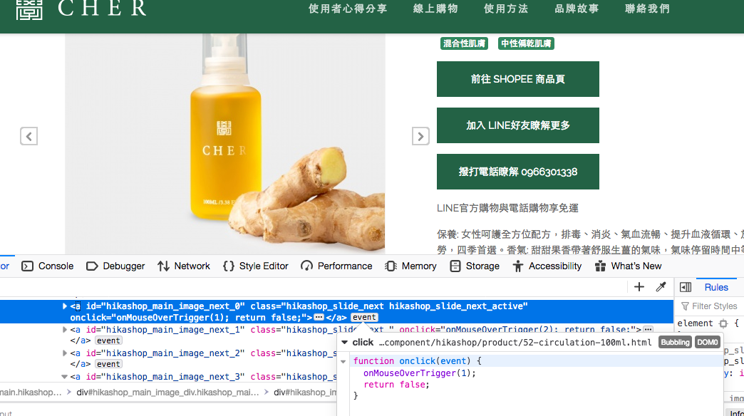 Hello, I found out my version of chrome is too old. but I have another question, is it possible to add next and prev buttons on the side of product image, or show me how to do? Many thanks https://cherbeauty.tw/component/hikashop/product/20-true-nature-100ml.html