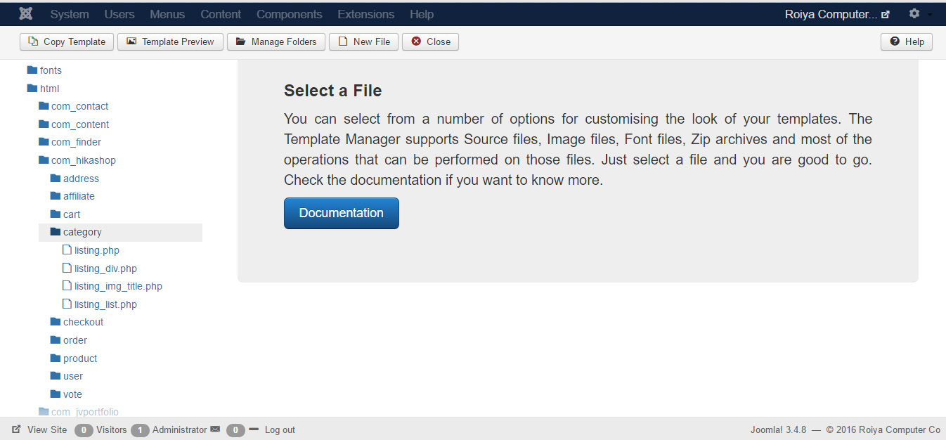You'll have to do it here so that all the customization that you've made on the Hikashop files of that template won't be applied.