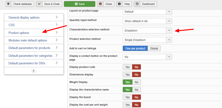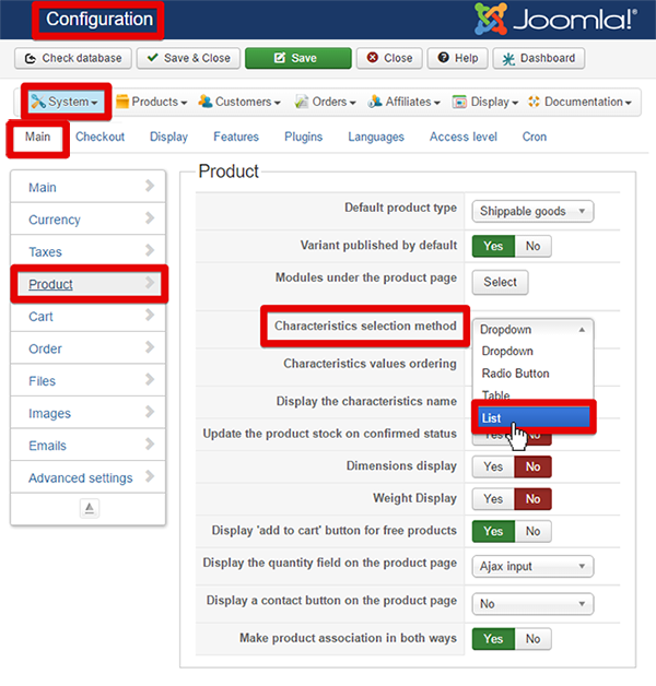 Which is why the characteristic display method setting of the characteristics will be removed if you select a "list" display on the HikaShop configuration.