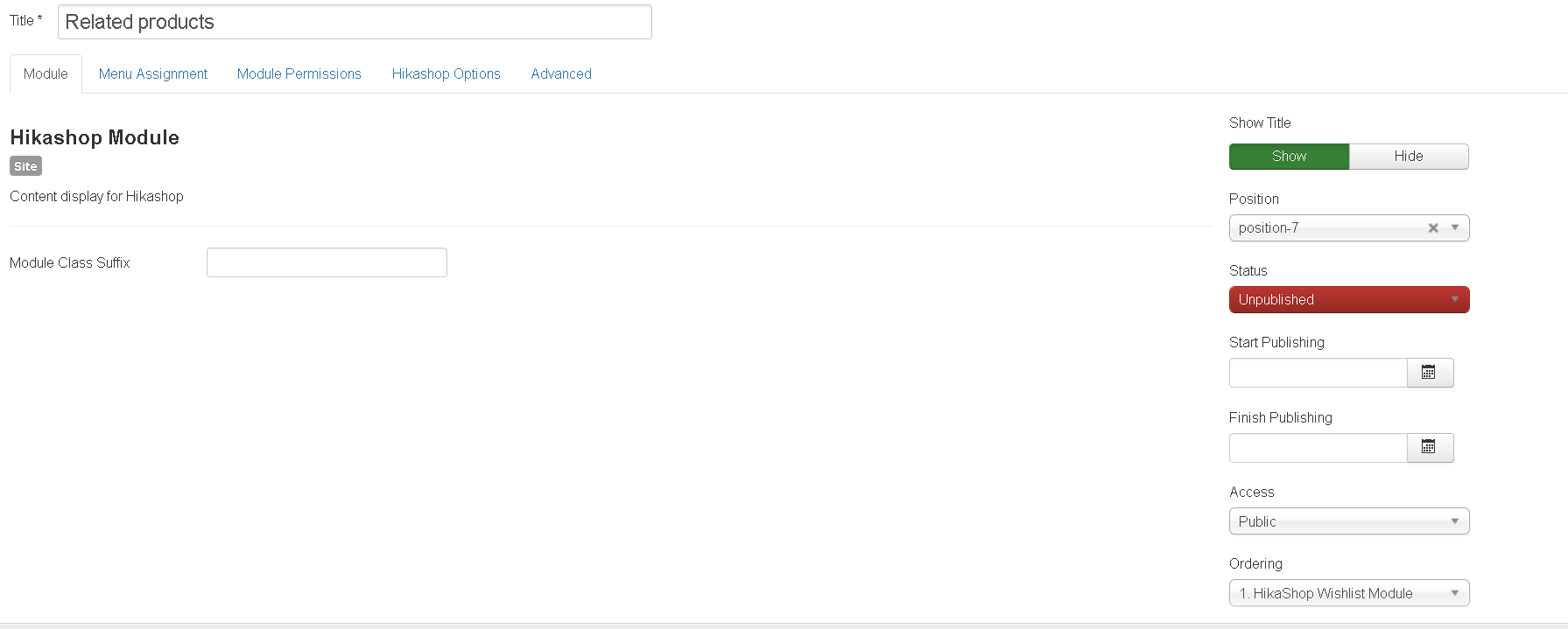 These products will then be displayed as a products listing at the bottom of the product page thanks to the "Related products" module that is pre created by HikaShop and enabled in the "Modules under the product page" setting of the HikaShop configuration. You can edit that module via the menu Display>Content modules if you want to change the display of the related products.
