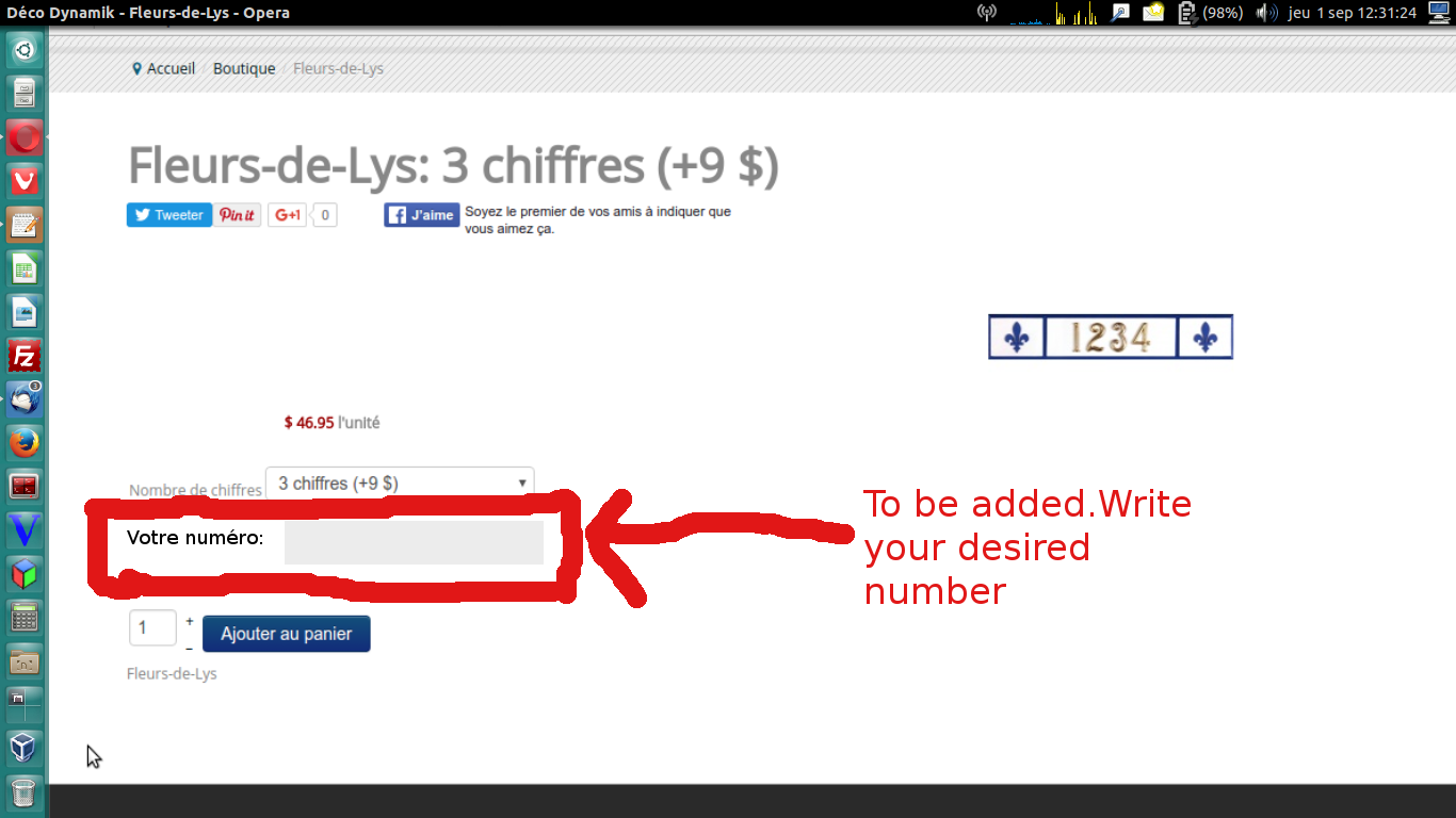 Nous vendons des enseignes de maison. Quand un client choisi combien de chiffre il veut (Ça change le prix) On aimerait savoir quel numéro de rue il désire sur son affiche. Comment on introduit cette boîte de renseignement à remplir sur une fiche produit ?