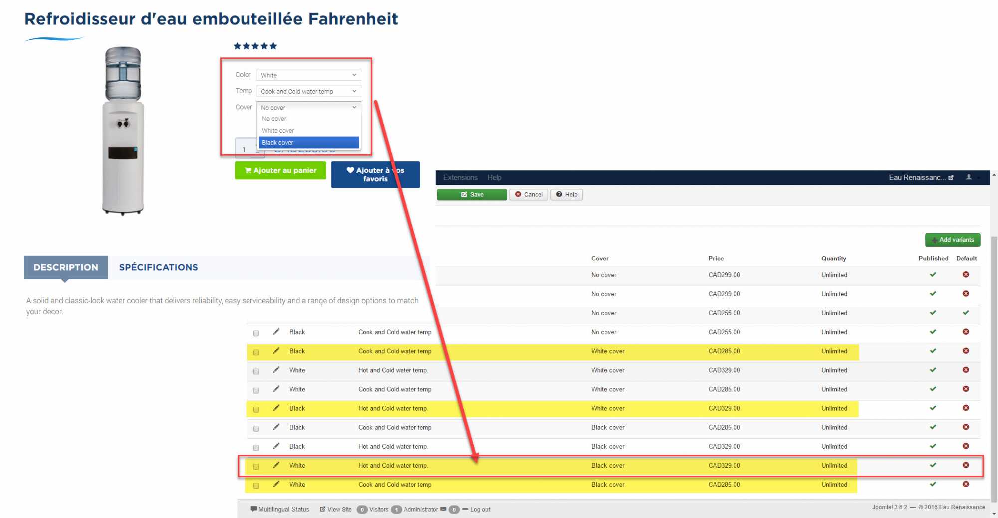 So, in our case; we sell water coolers; white and black, with or without covers (white or black covers in this case). We want to buyer to have to choice to add a cover or not but only the appropriate color. In other words, we don't want the white cover value to appear if the previous choice is a black water cooler ... and vice versa.