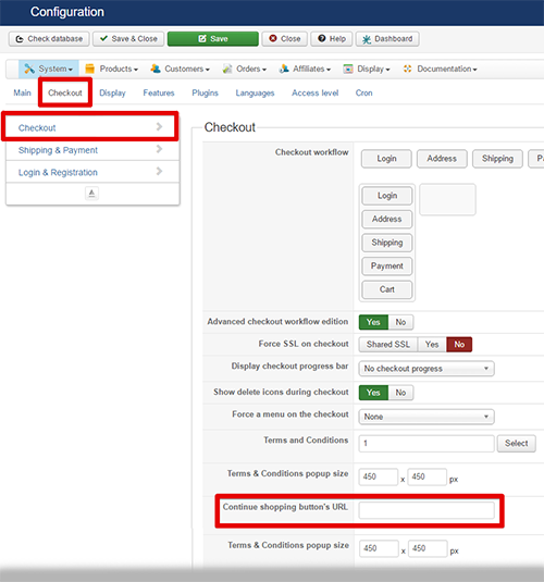 You can directly enter your Url link in this option, in this input, in Components => HikaShop => Configuration, in Checkout tab :