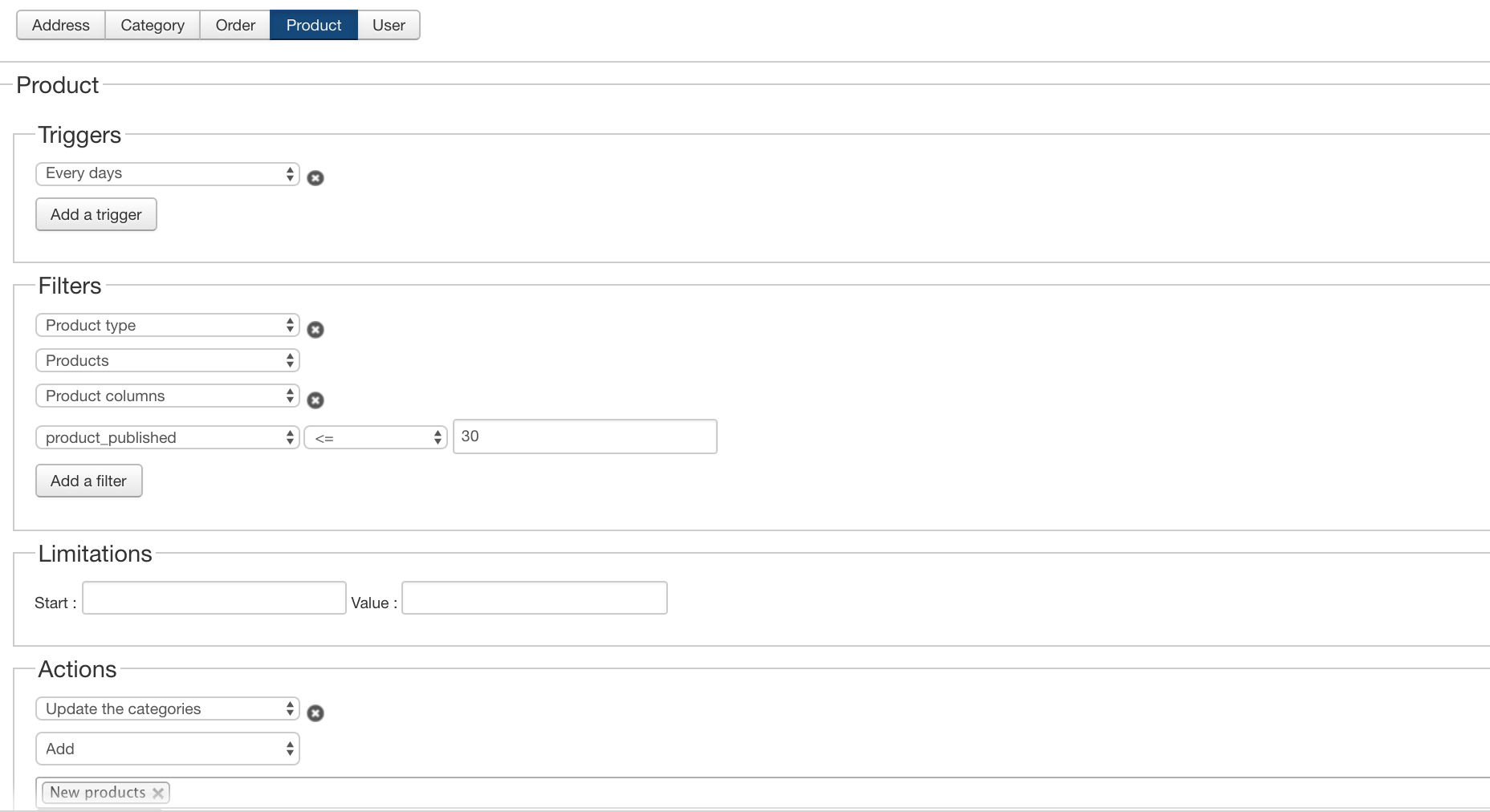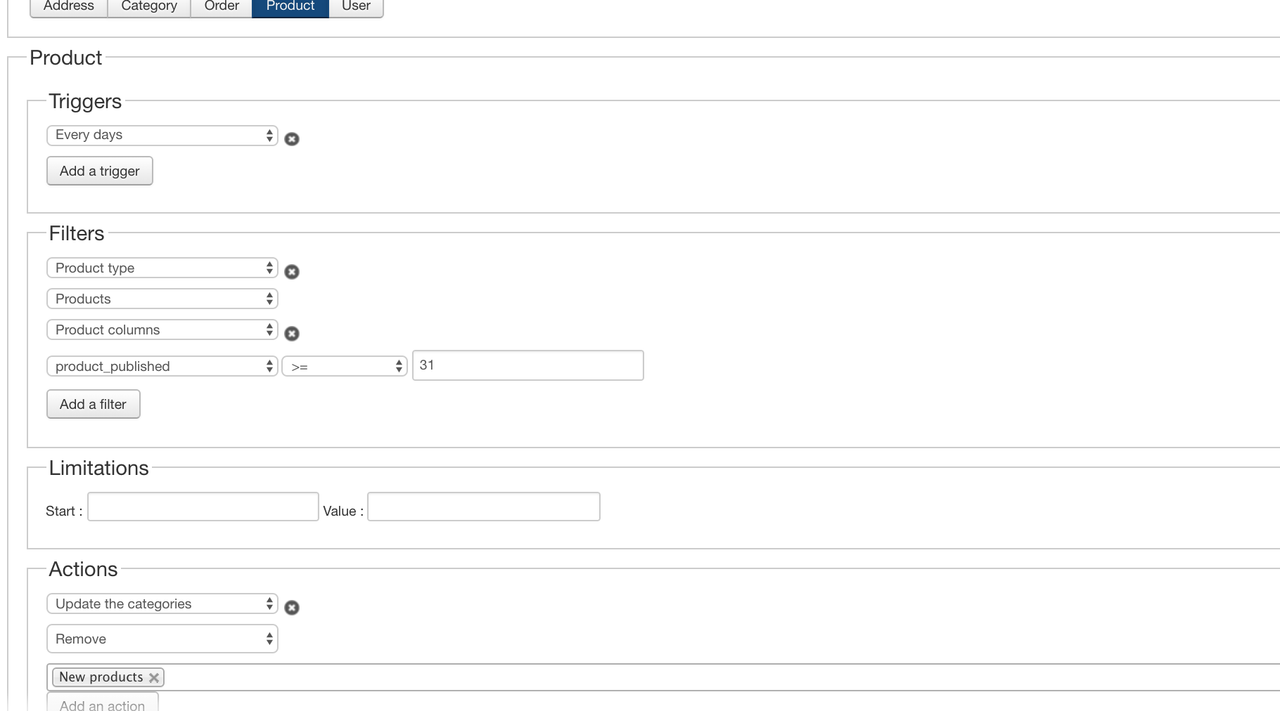 this is the mass action to remove them from the new category after 30 days or >=31 days