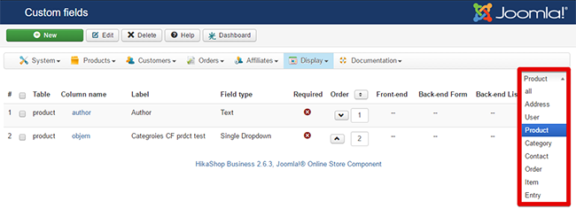 Product list shows custom fields