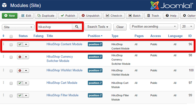 - Use your Search input all your HikaShop Content module
