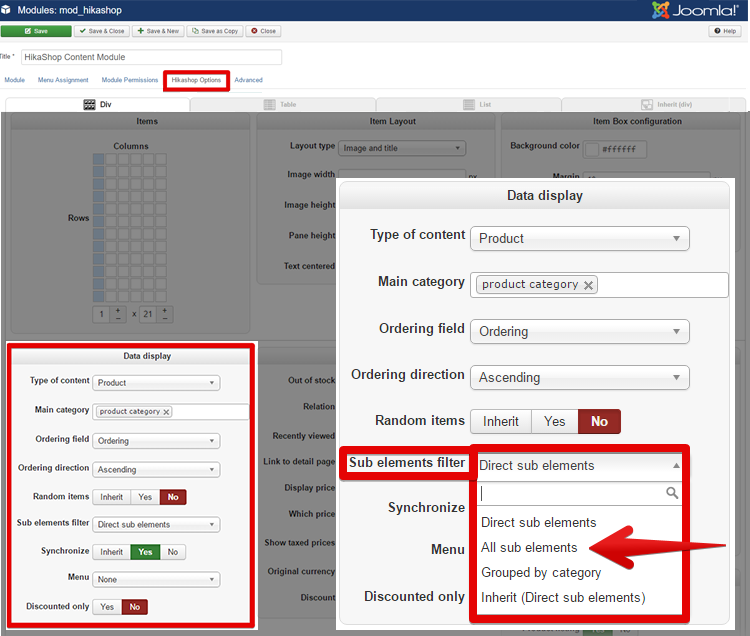 - Look for the Display part, and "Sub elements filter" option