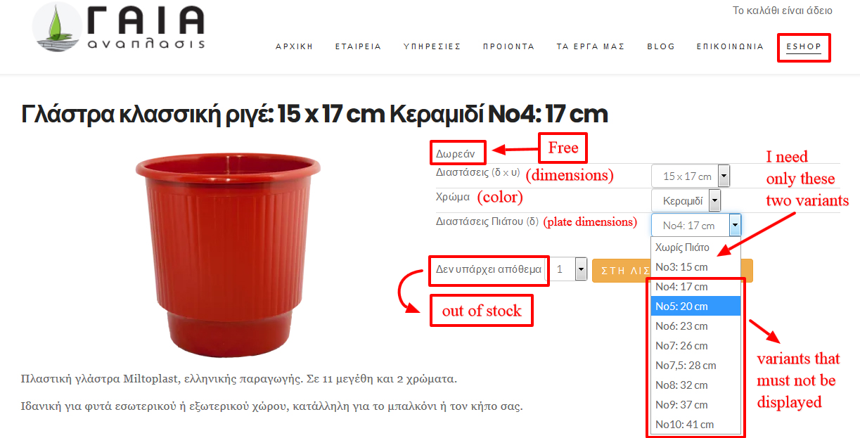 I have set the variants for the product so both Garments (Hoodie and Sweatshirt) include all sizes but the Hoodie only includes grey, blue and pink colours while Sweatshirt only comes in Two Tone Grey.