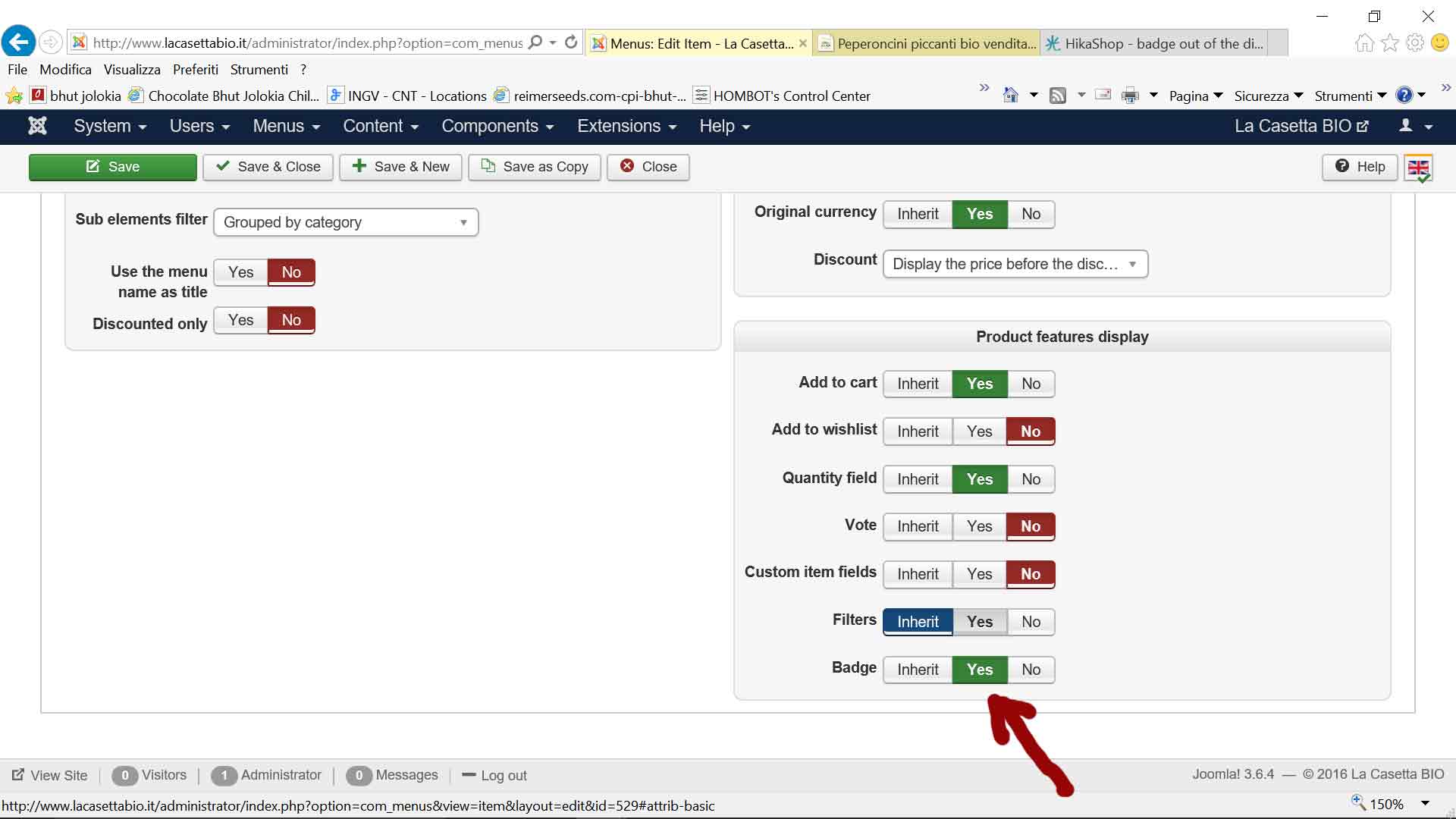Also the "badge" setting on the menù id 529 is turned on.