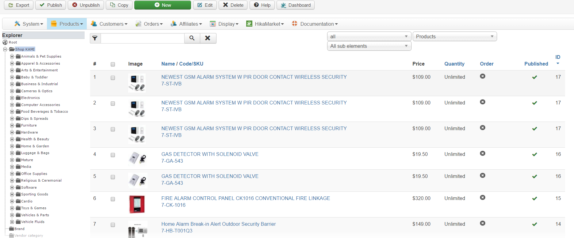 Problem on back-end product lists, duplicate item listed. example - product id 17, is listed 3x. id 16 listed 2x. dont know why.