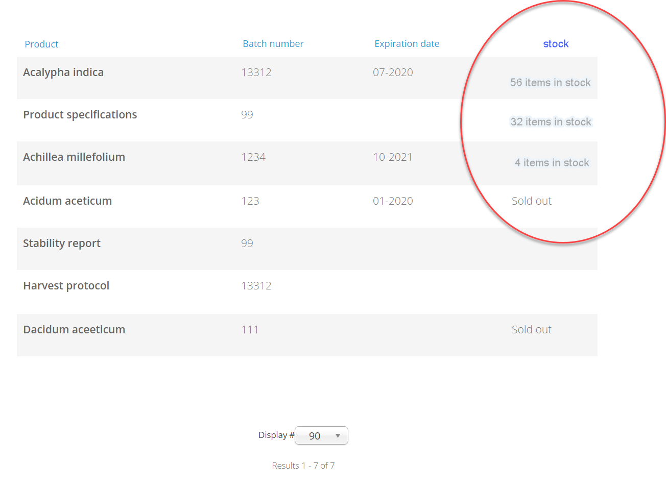 We are going to sell homeopathic materials whose information of this batch should remain available after it is sold out. But I found out that the product still can be displayed from my orders after it's sold out when you turn off the viwe