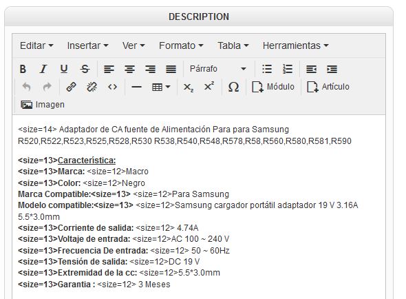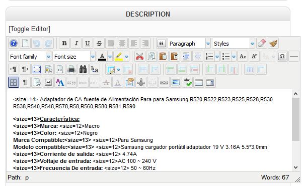 In Hika Shop product description appears the code with code "font size" mixed with the text. (See attached image)