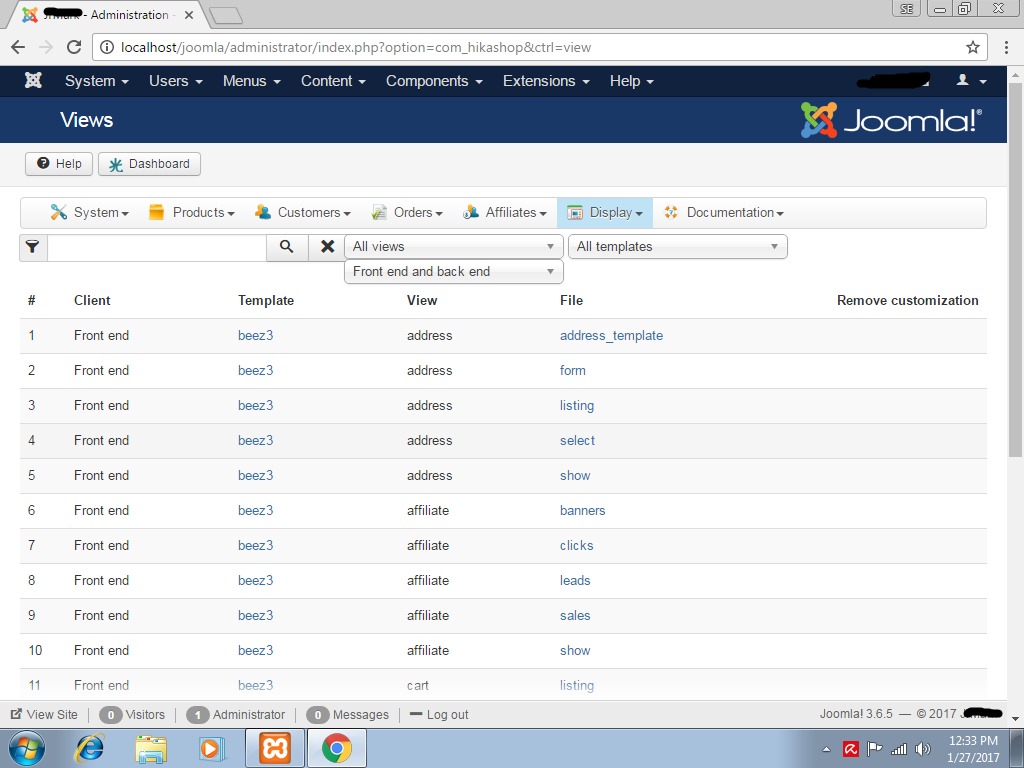Your screenshot is showing view for the "beeze3" template ; which is a template you just told is working fine.