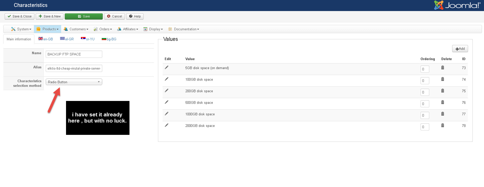 I have for example e computer as a product and also i have characteristics as RAM, Hard Disk, etc...