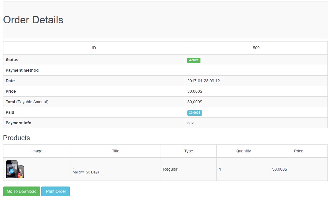 Display (download - Orders - Orders details)