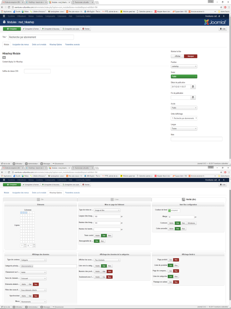 Quand je clique sur le lien "Souscrire un abonnement", le module attaché au menu caché 'Abonnement" s'ouvre deux fois dans le ContentTop. Evidemment, ce n'est pas mon objectif.