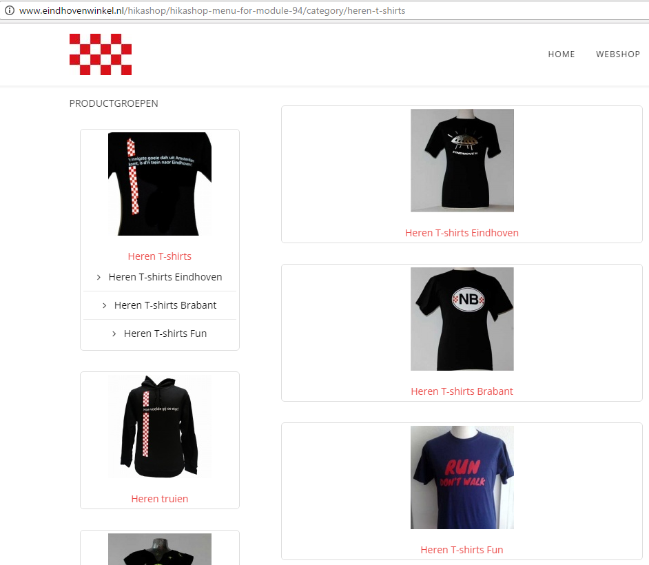 Ok, now I click Heren T-shirts Eindhoven, it gives me a blank webshop page ==> 03