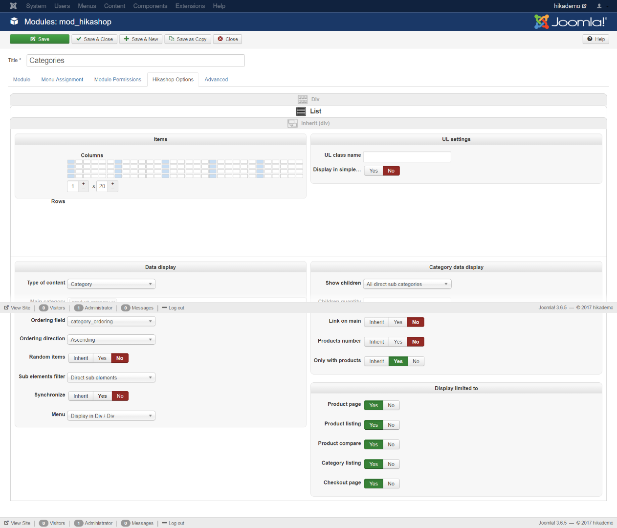 When I go to the demo admin, I can't look at the settings of that Categories module. It is not editable. What a pity.