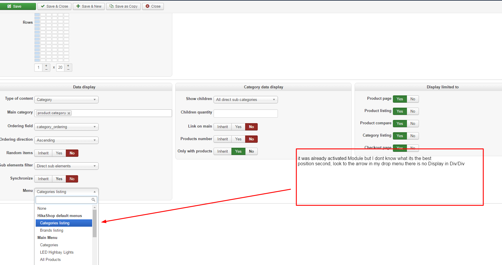 this screenshot above where you ask me to start which is what i did , I went to module, then i activate it then I went to menu assignment and i choose all products as the next screen shot down please see