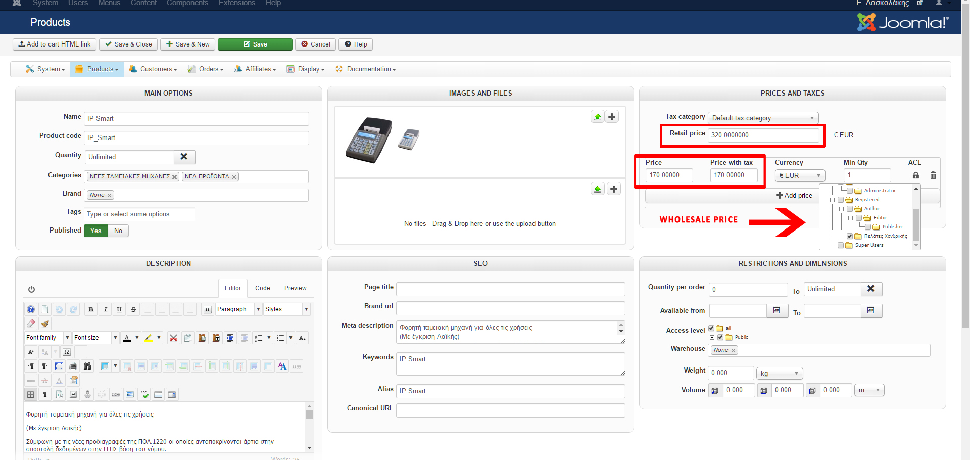 i have 2 prices for all products, one is retail and the other is for wholesale customers only.