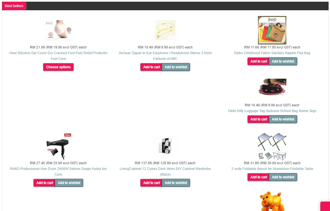 - All products on the page are displayed under <div class="hk-row-fluid"> and have float:left style, i.e. browser is in charge of breaking rows based on the individual product image/box sizes and overall layout width.