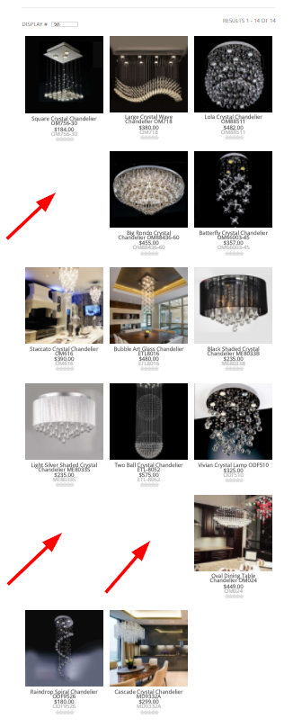 - All of the above causes the boxes representing different products to have different heights. The difference may be just a few pixels, but it affects the placement of the products in the next row.