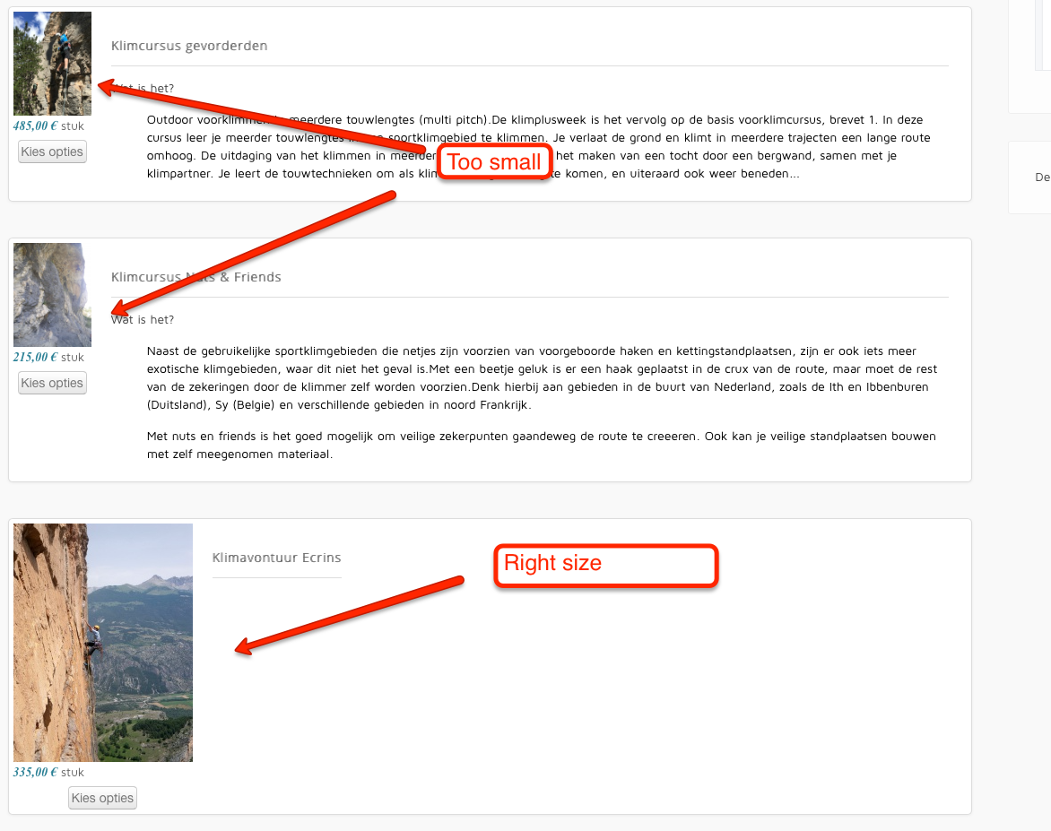 The thumbnail of the image will than turn smaller than in the products without a text in the custom field.
