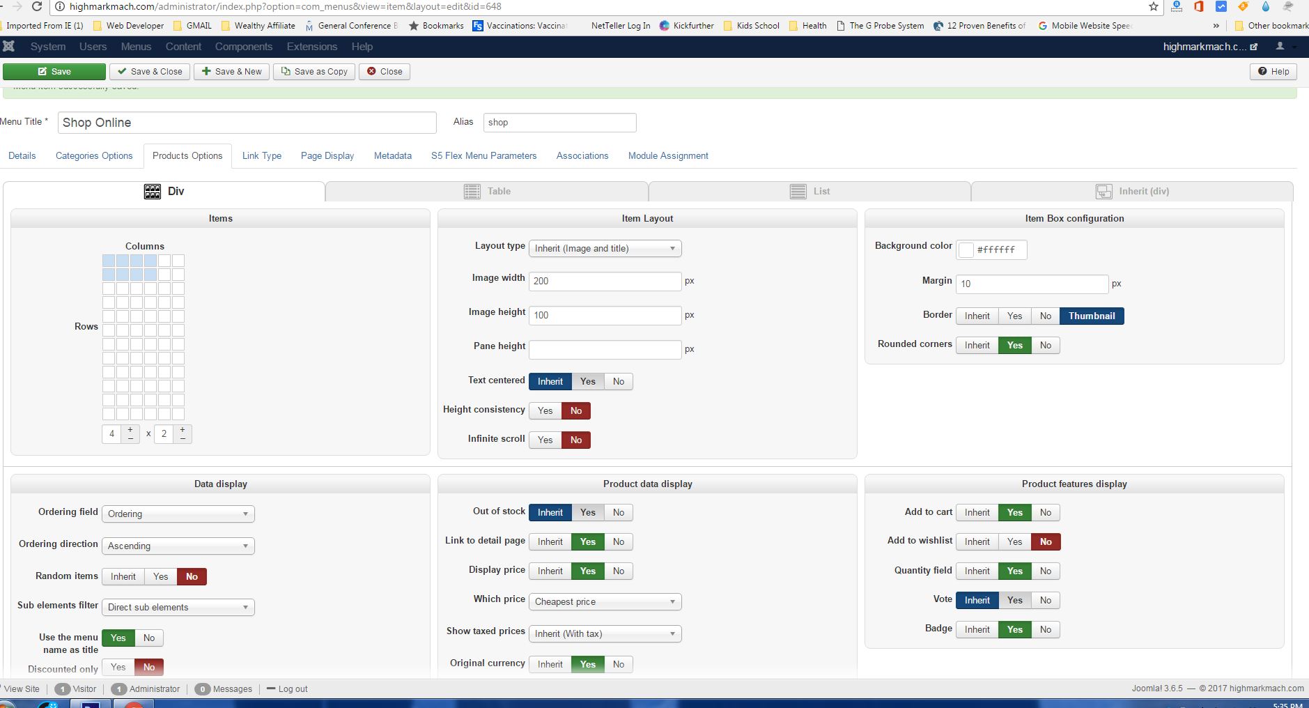 Please provide a screenshot of you Joomla menu with the ID 648 (it's an HikaShop category listing menu).