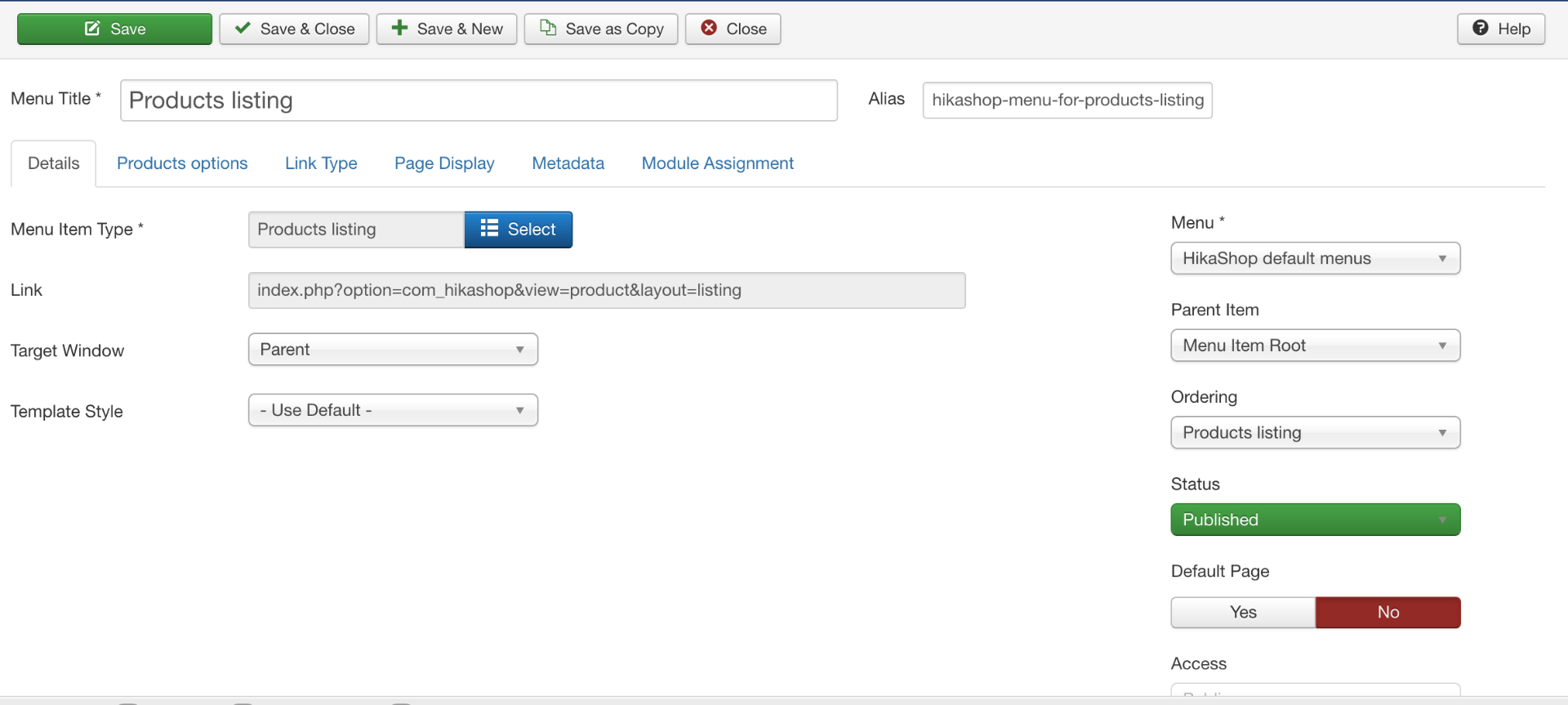 Then please provide screenshots of all the settings of that menu item and a link to that page so that we can have a look.