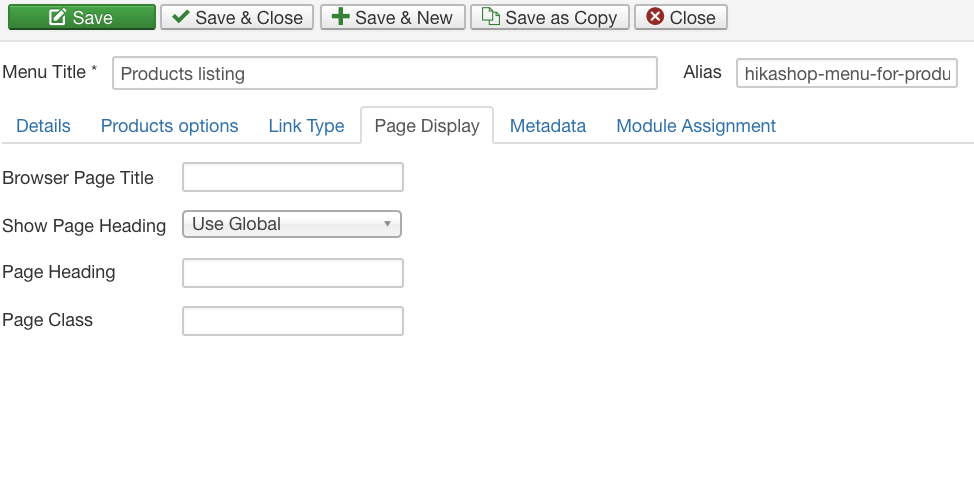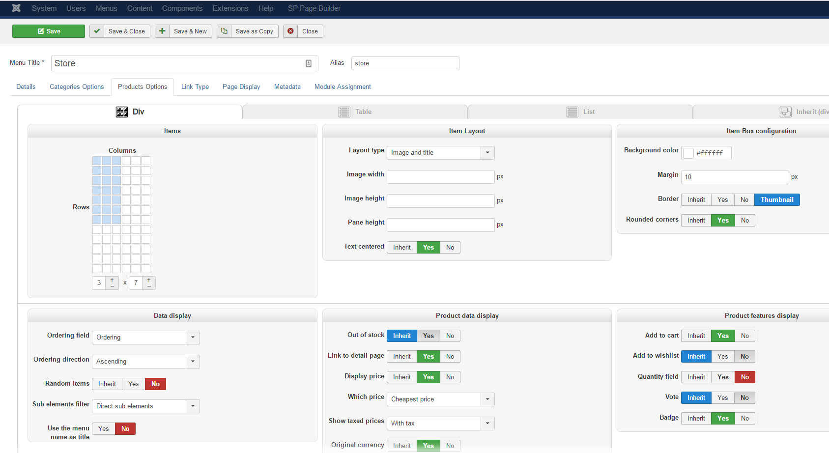 Unfortunately, the alias of the menu item in your screenshots ( "hikashop-menu-for-products-listing" ) and the menu item alias of the URL ( "store" ). So you're not looking at the settings of the correct menu item.