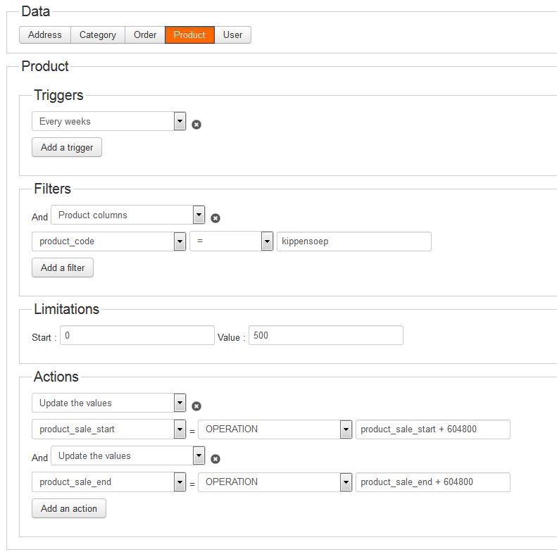 I have accomplished to set the availability of product "A" on Monday repeating each week, but I am not sure how to set the availability also on Wednesday.