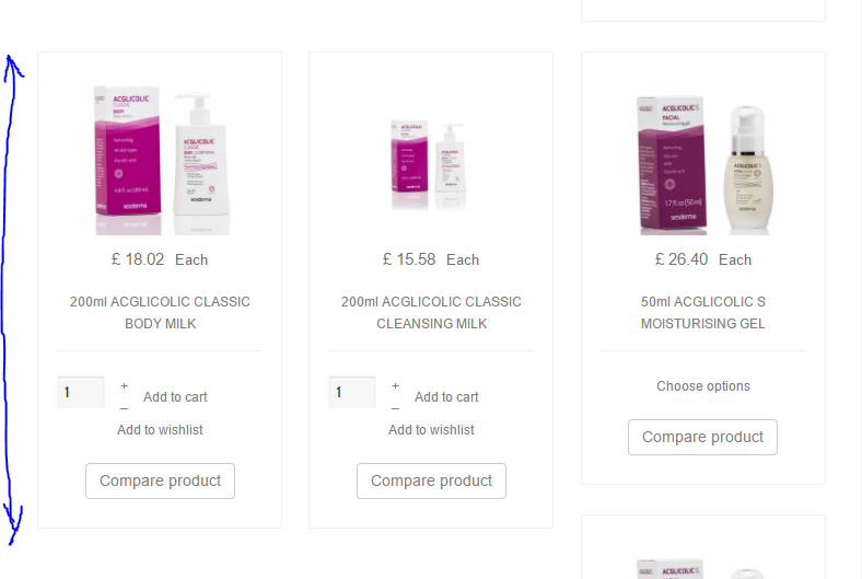 Is there a way to force the system to display the product boxes in the same "length" so that you always get a tidy display. If they are all the same length then they would display 3x3 or 3x4 and so on not with the odd one offset.? Can this be done.