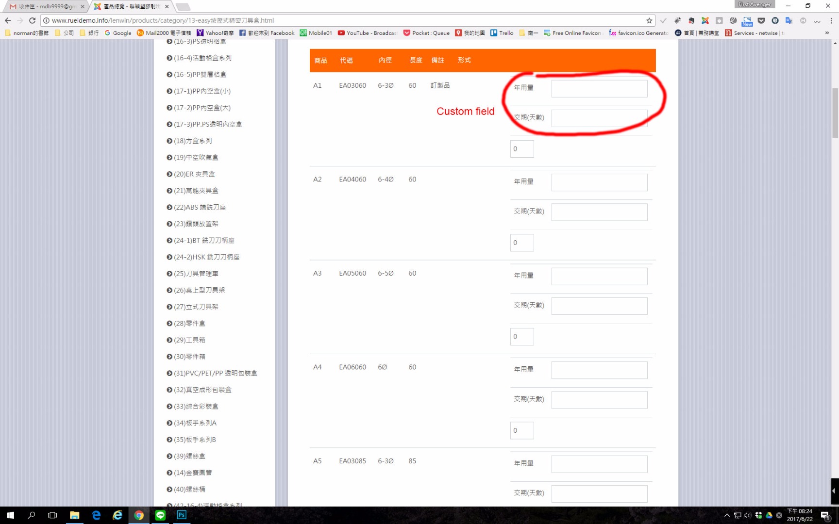 I use custom fields in products table listing to let user enter some value before they add products to cart, just see the screenshot1.