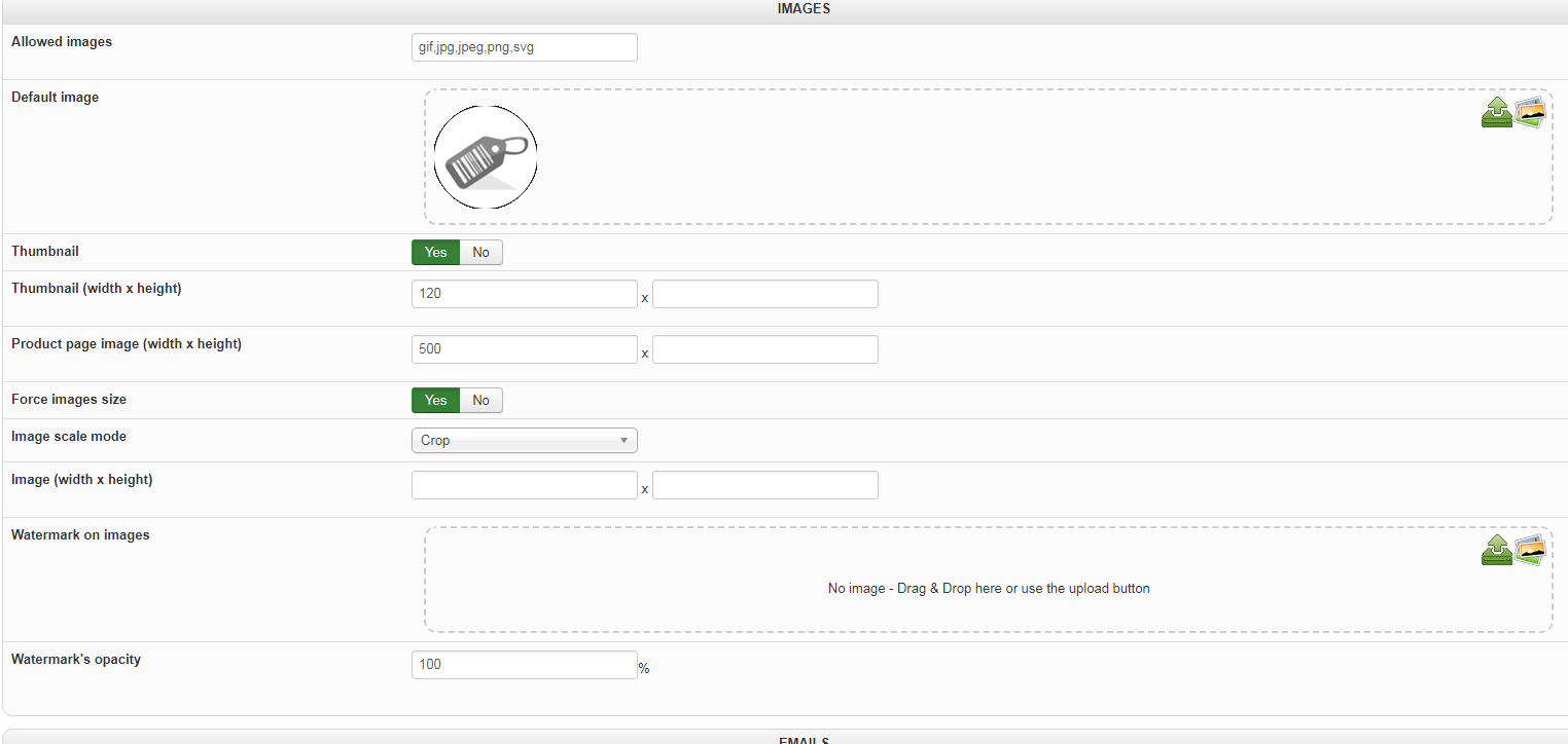 In the global configuration I have to set "Force images size" to Yes and "Image scale mode" to Crop so my thumbnail images at the category listing will appear cropped and square. But this setting will affect the product images as well. How can the images be independent of each other? I would like the category thumbnail images to be cropped and square but images at the product page will be keeping the ratio with variable height.