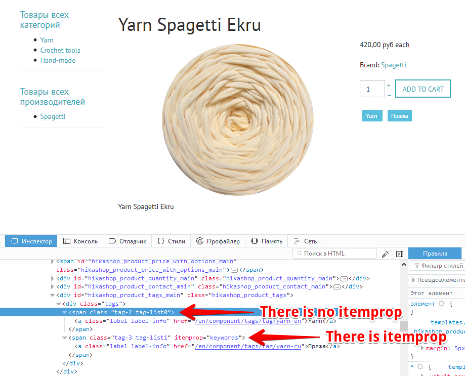 HikaShop is calling the tag system from the Joomla core and the content is directly processed by Joomla.