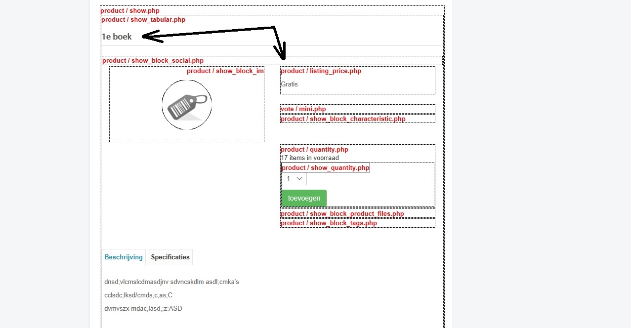 But what i can tell you is that you just need to have a look at your screenshot and you will see that the text "1e boek" is in "product / show_tabular" view.