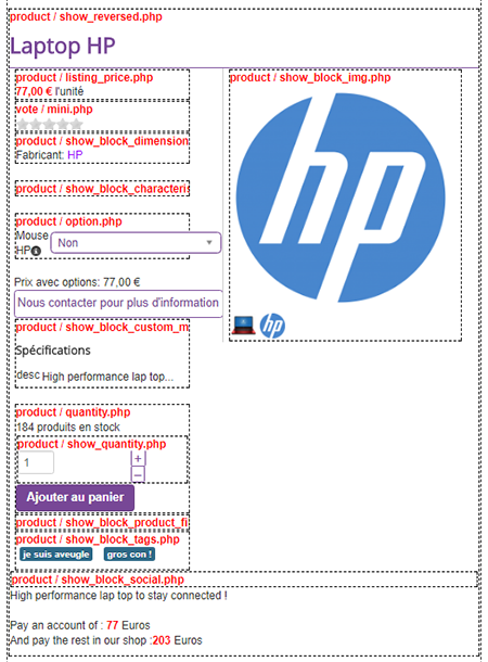 You have other product layout (in HikaShop Configuration, in display tab and Product options part) but from what you told us that won't fit your needs.