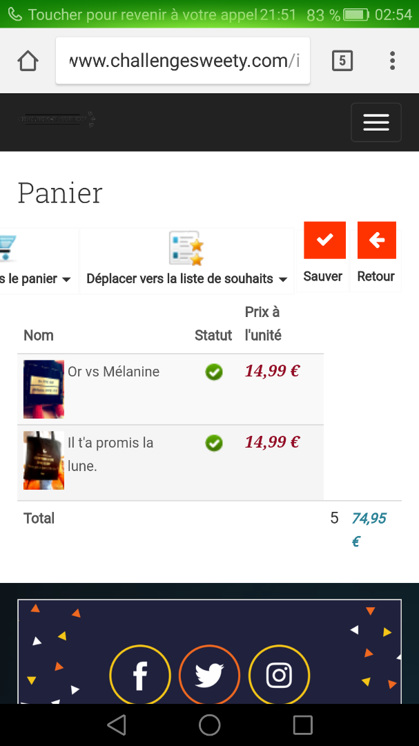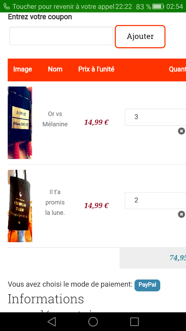 then i have the cart module in copyright position, when u add articles to cart, and then click on "terminer la commande" (finish shopping) it brings to to this page